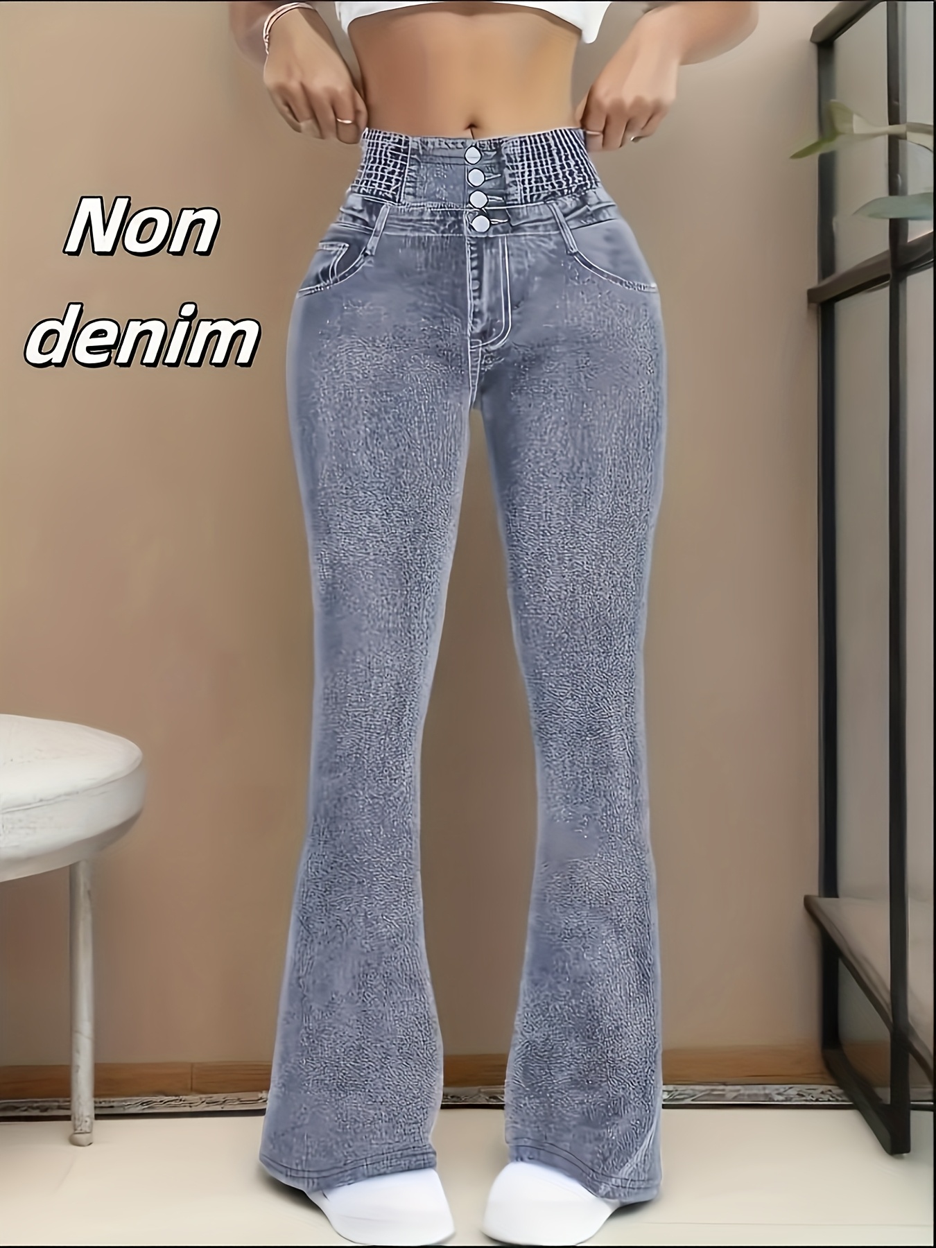 [Denim Print/Imitation Denim] Women’s High-Waisted Imitation Denim Jumpsuits – Non-Stretchy Bell-Bottom Trousers with Digital Print, Machine Washable All-Season Casual to Formal Pants (Non-Denim Fabric, Comfortable Casual Attire, Belt Loops & Button Closure, Relaxed Fit, Geometric Pattern, Flared Leg Design, Adult Women’s Fashion, Versatile for Jeans Look, No Wrinkles, Easy Care, Suitable for Jeans-Style Outfits) – Ideal for Jeans Look Without Denim Fabric,