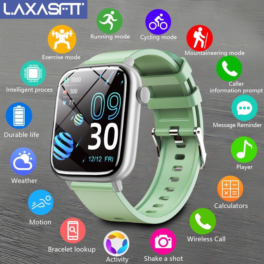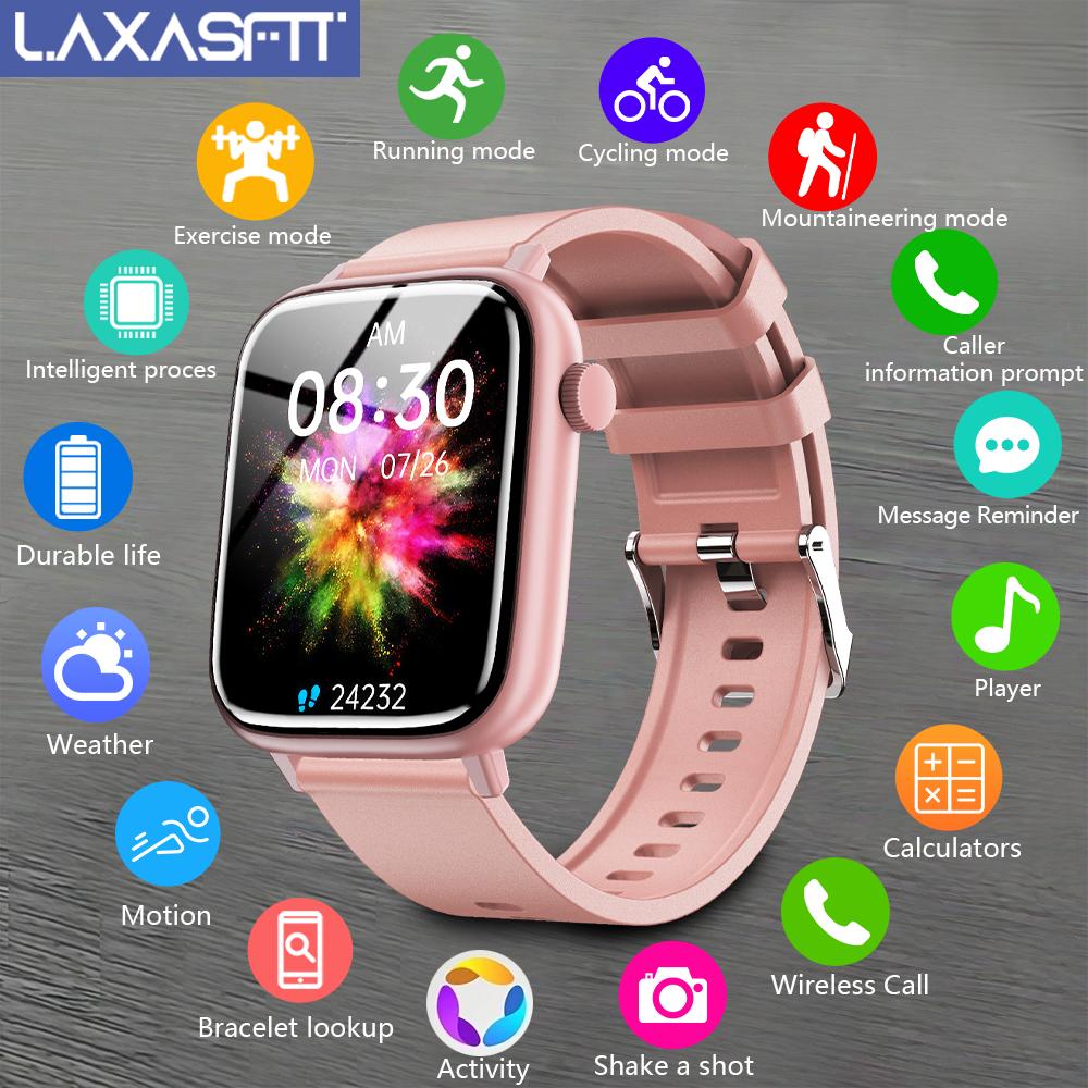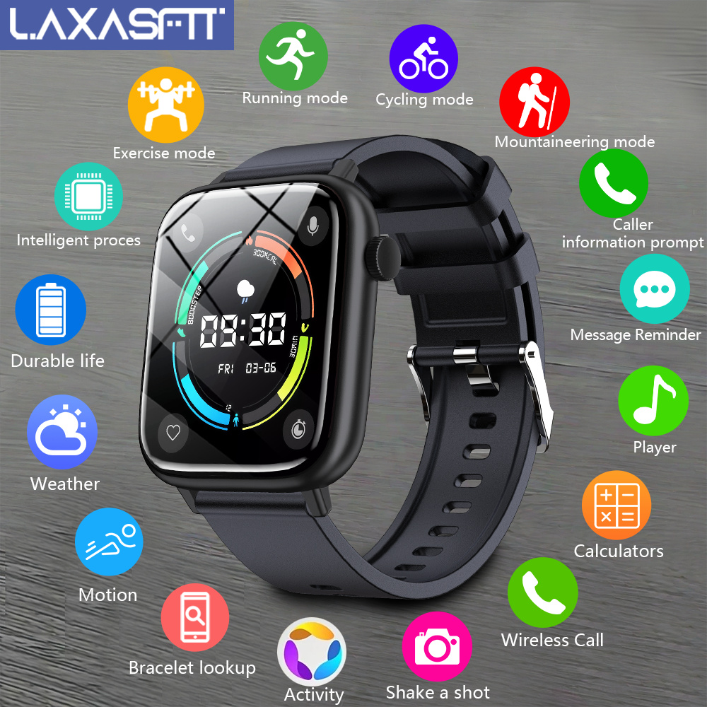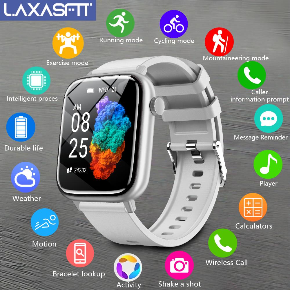 LAXASFIT Smart Watch for Men & Women – IP68 Waterproof, 4.7cm Full Touch Display, Wireless Calls, Music Control, Camera Remote, Alarm Clock, Stopwatch, Weather Reminder, Pedometer, Calorie Tracker, Distance Tracking, USB Rechargeable