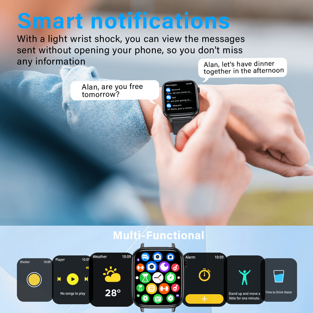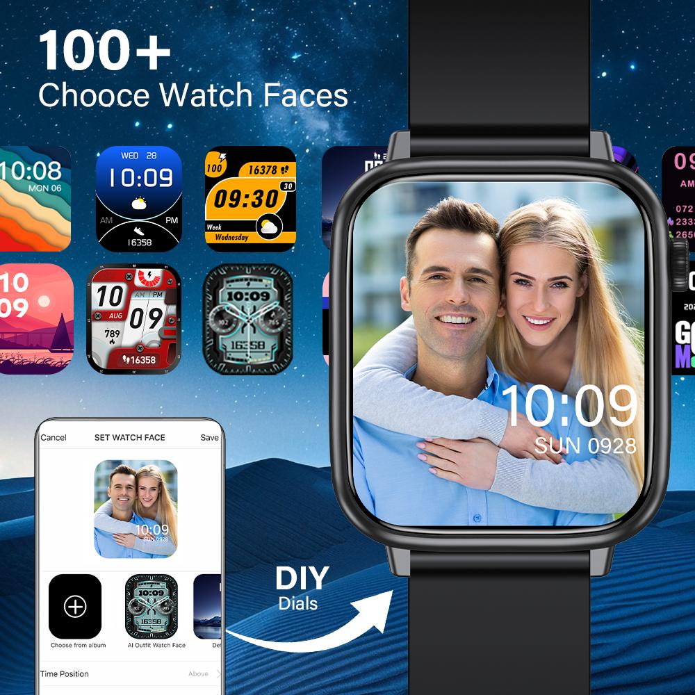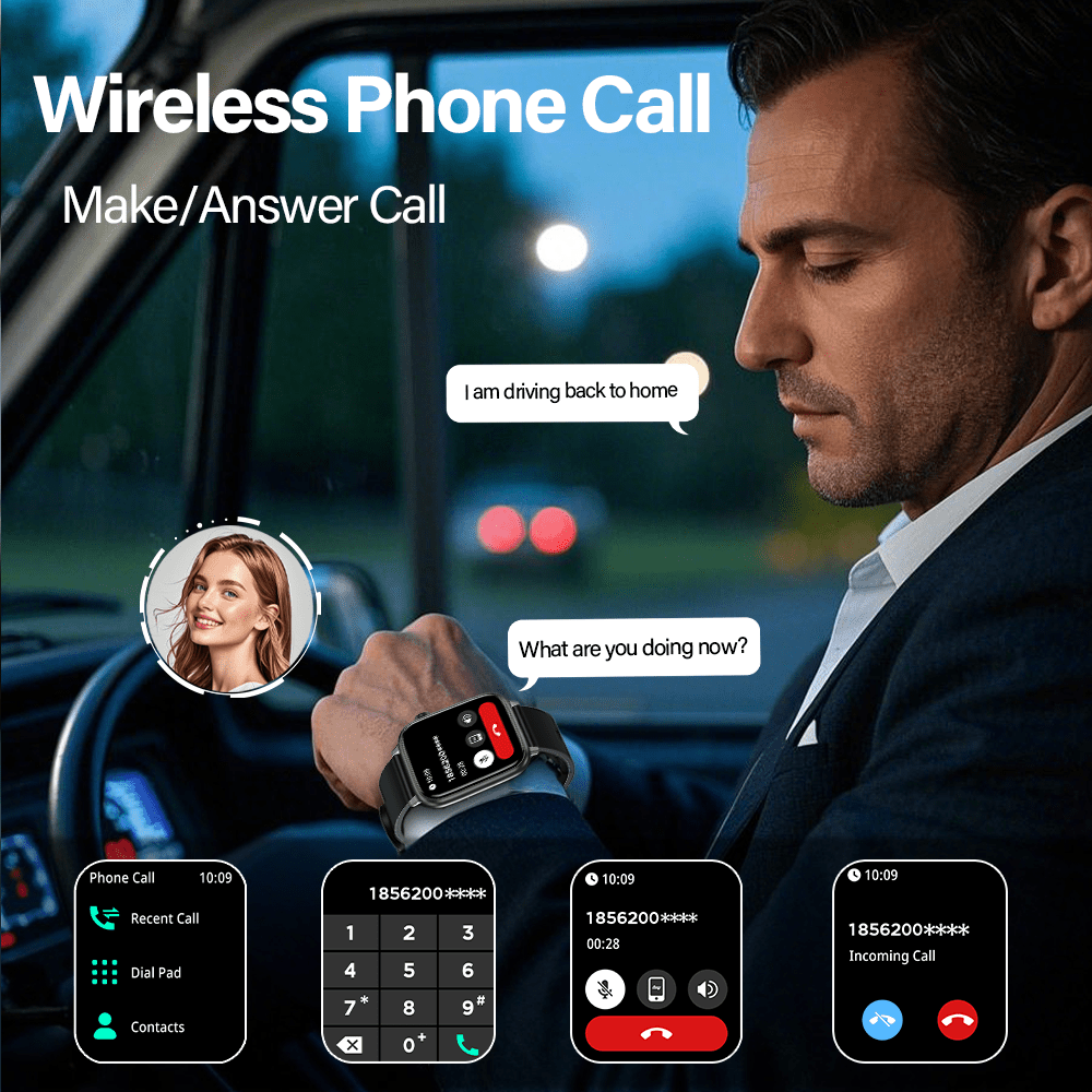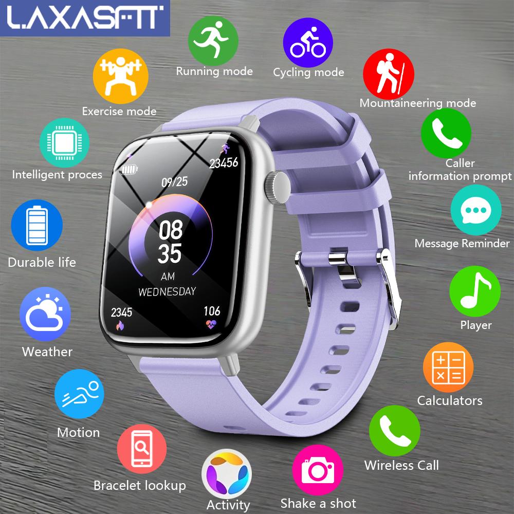 LAXASFIT Smart Watch for Men & Women – IP68 Waterproof, 4.7cm Full Touch Display, Wireless Calls, Music Control, Camera Remote, Alarm Clock, Stopwatch, Weather Reminder, Pedometer, Calorie Tracker, Distance Tracking, USB Rechargeable