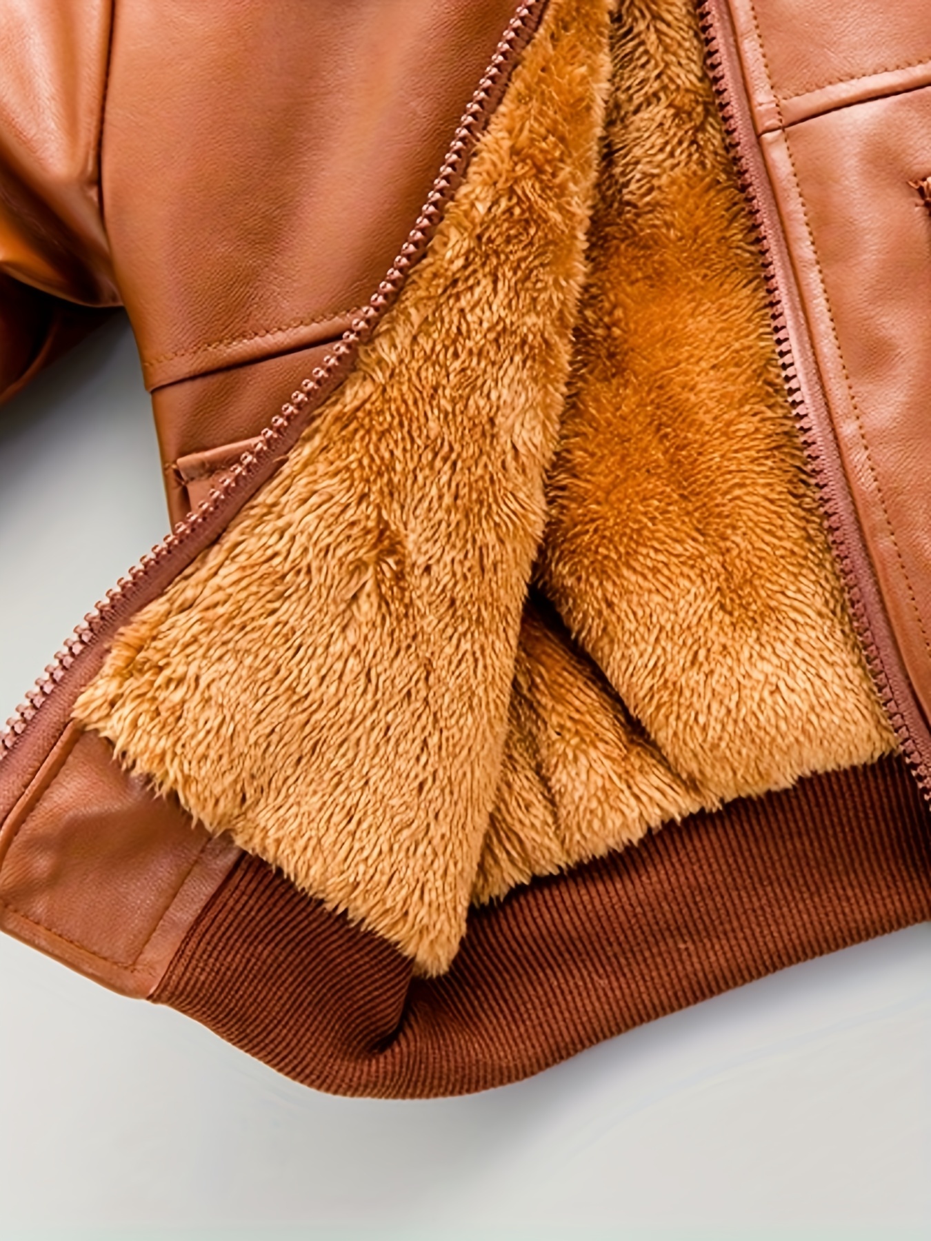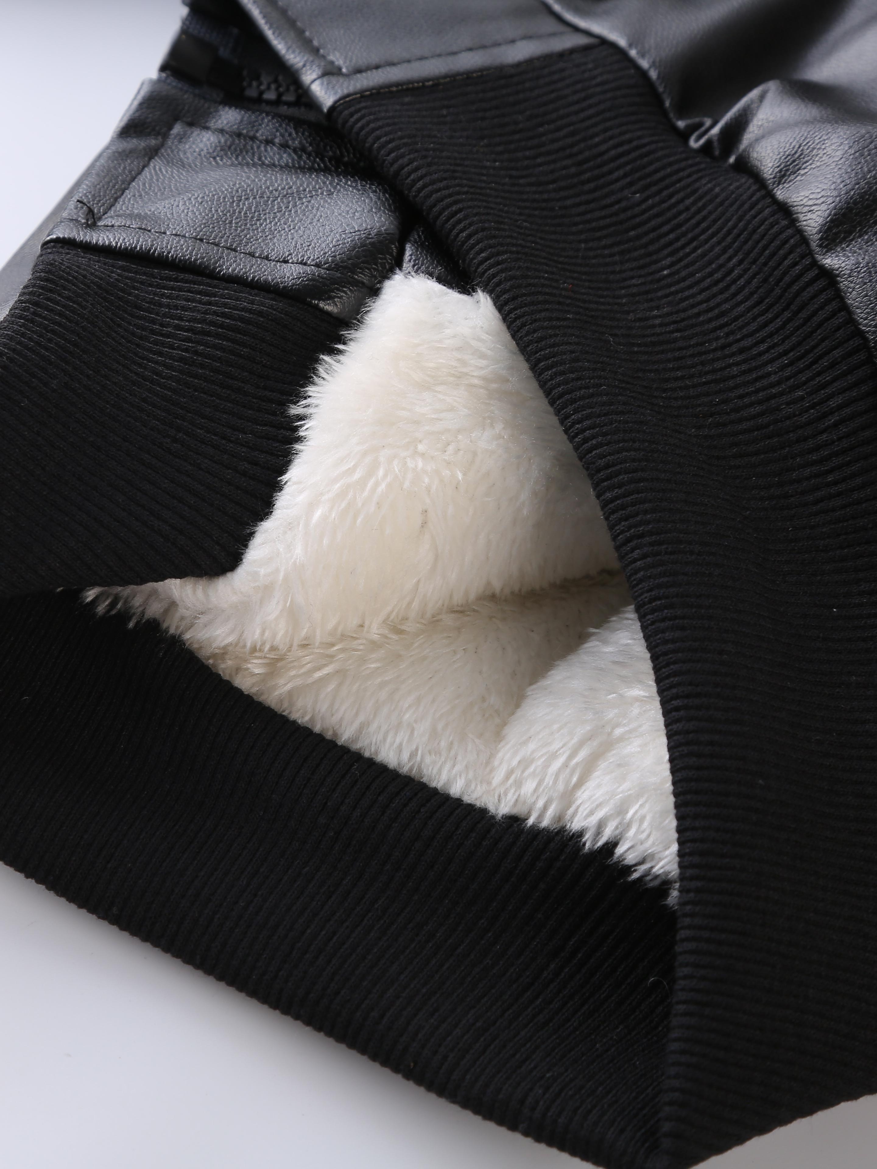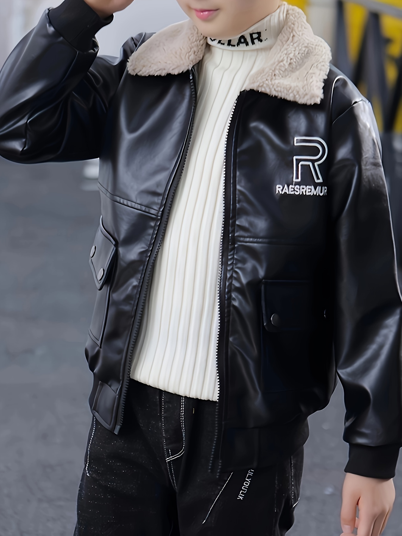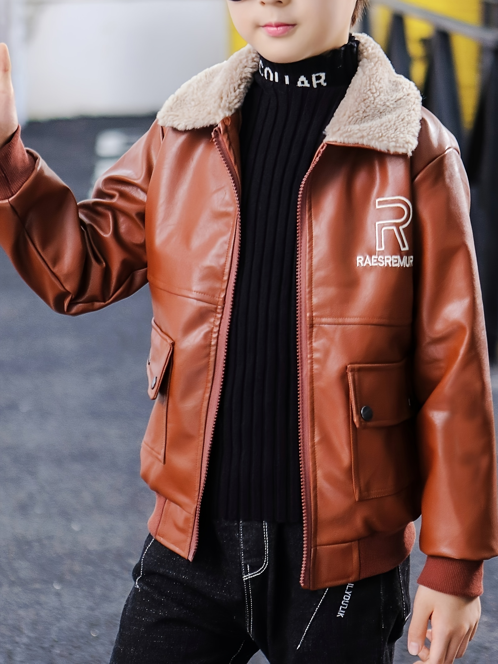‘ PU Fleece Jacket Winter Warm Zip-Up Coat with Collar & Embellished Letter ” Emblem – Hand Washable Cold-Weather Outerwear for, Playdates (Regular Fit, Zipper Closure) | for