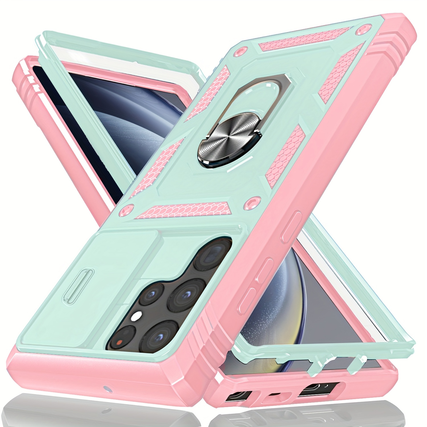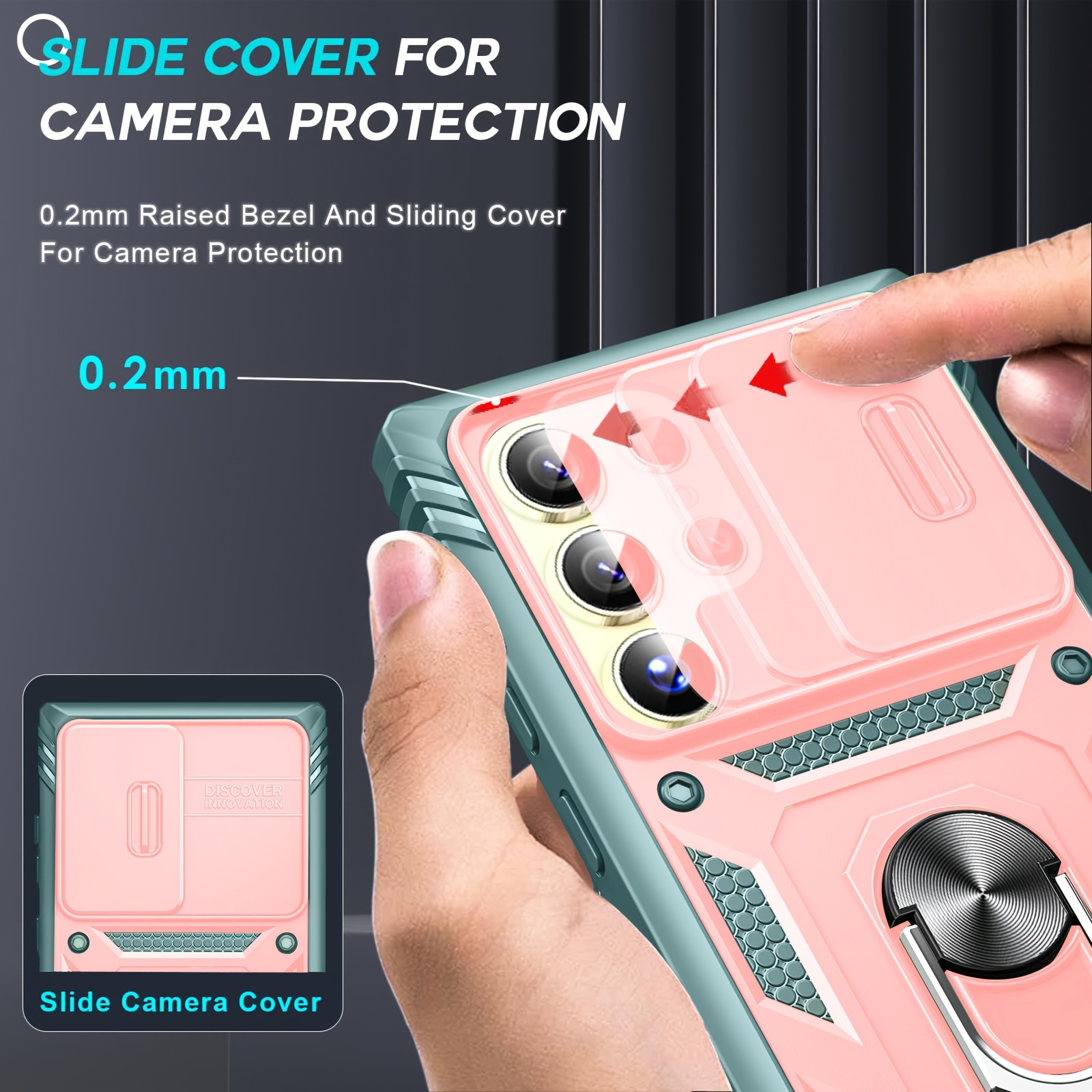 [Shockproof Armor Case] Shockproof Armor Case with 360° Rotating Metal Magnetic Stand | Window Series for Samsung Galaxy S25, S24FE, S23FE, S22, S21FE, S20FE Ultra Plus, A56, A55, A54, A36, A35, A34, A26, A25, A24, A16, A15, A14, A13, A06 5G & 4G Series – Sliding Lens Cover Protection