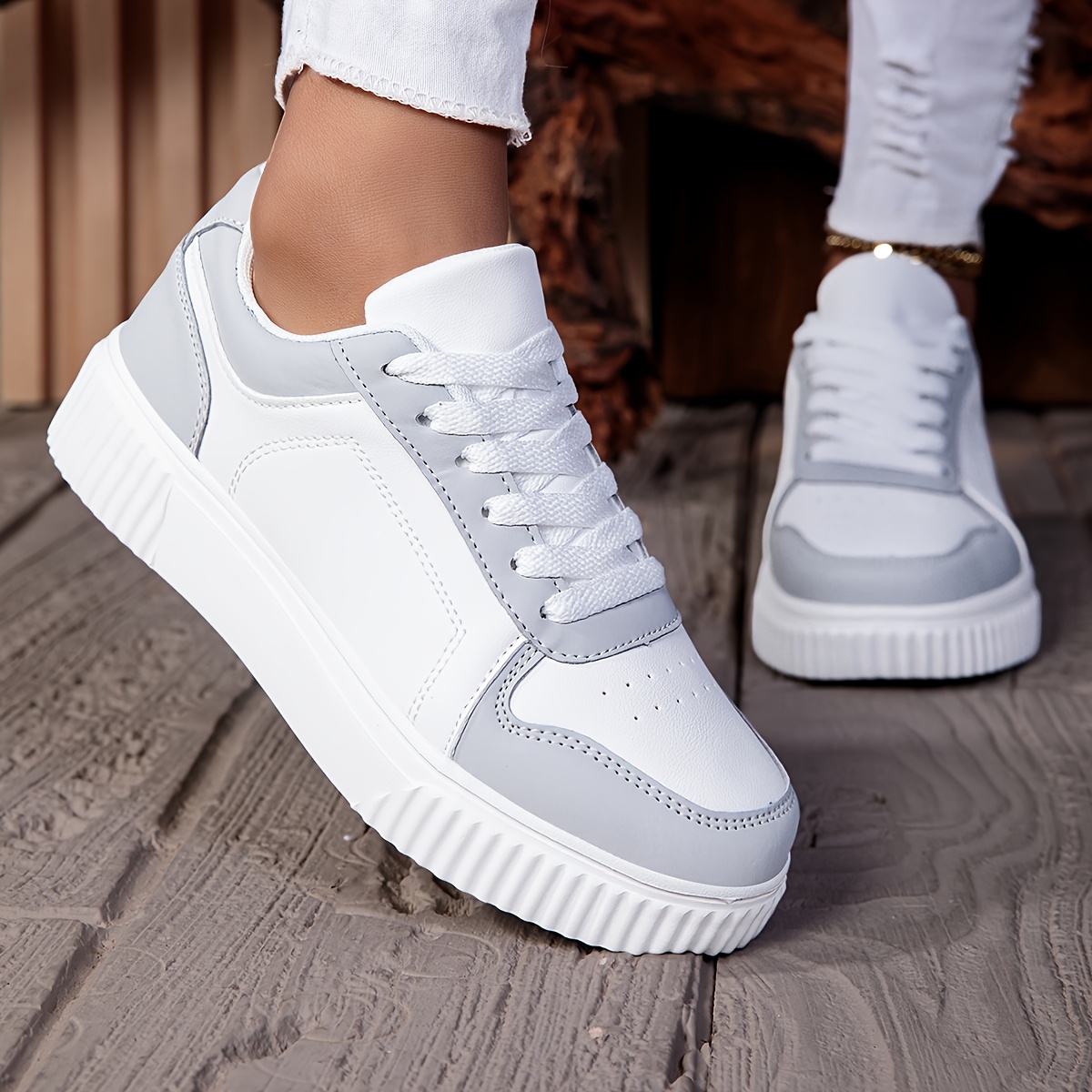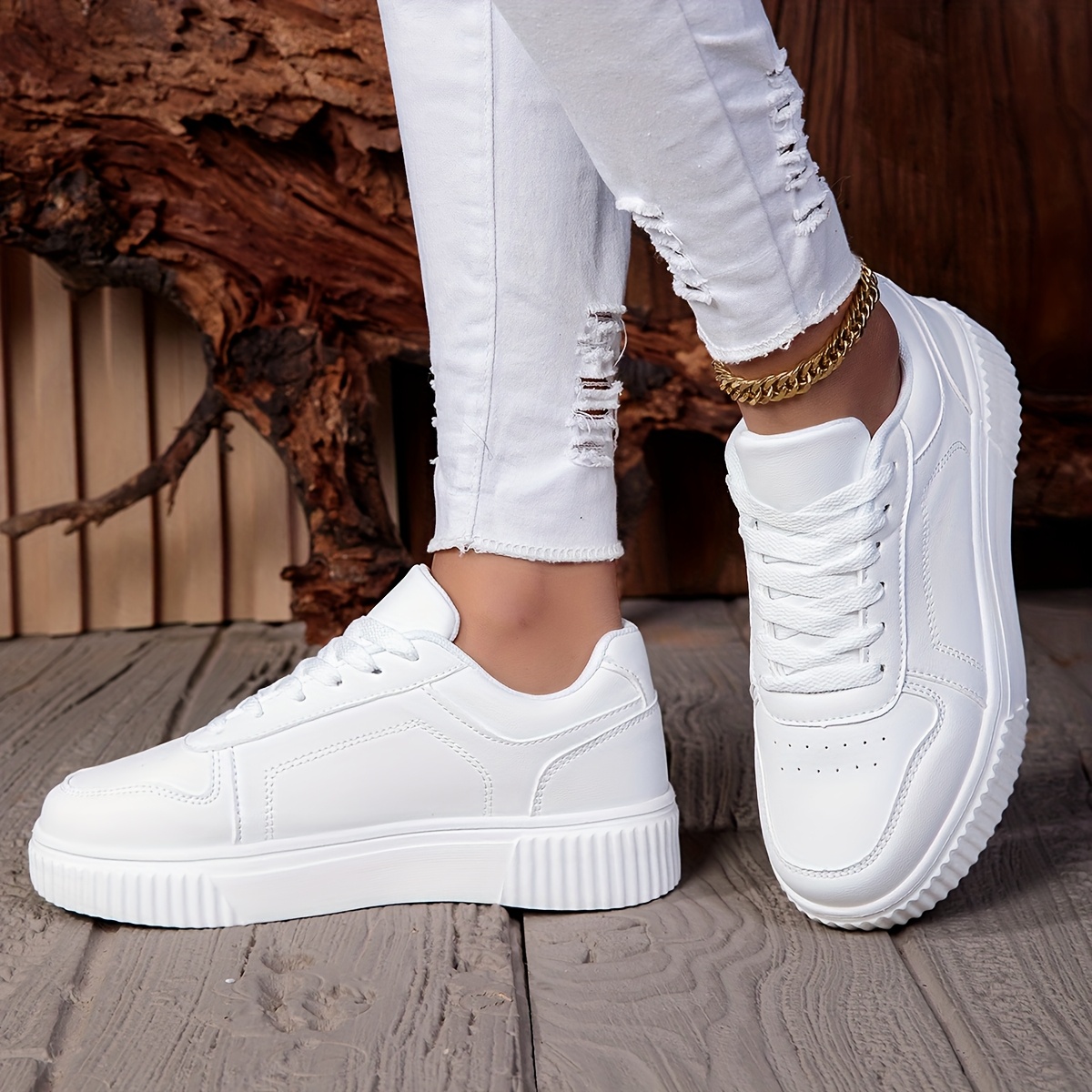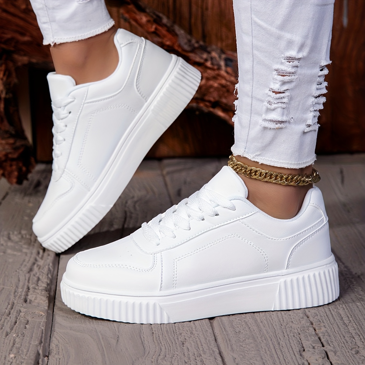 Women’S Casual Low-Top Lace-Up Sneakers – Breathable Lining, Lightweight PU & EVA Sole, White Geometric Design, All-Season Comfort for Outdoor Walking, Travel & Daily Wear, Durable & Stylish, Perfect for Live Streaming or Retail, Versatile Lifestyle Shoes | Minimalist Design | Comfortable Fit Shoes