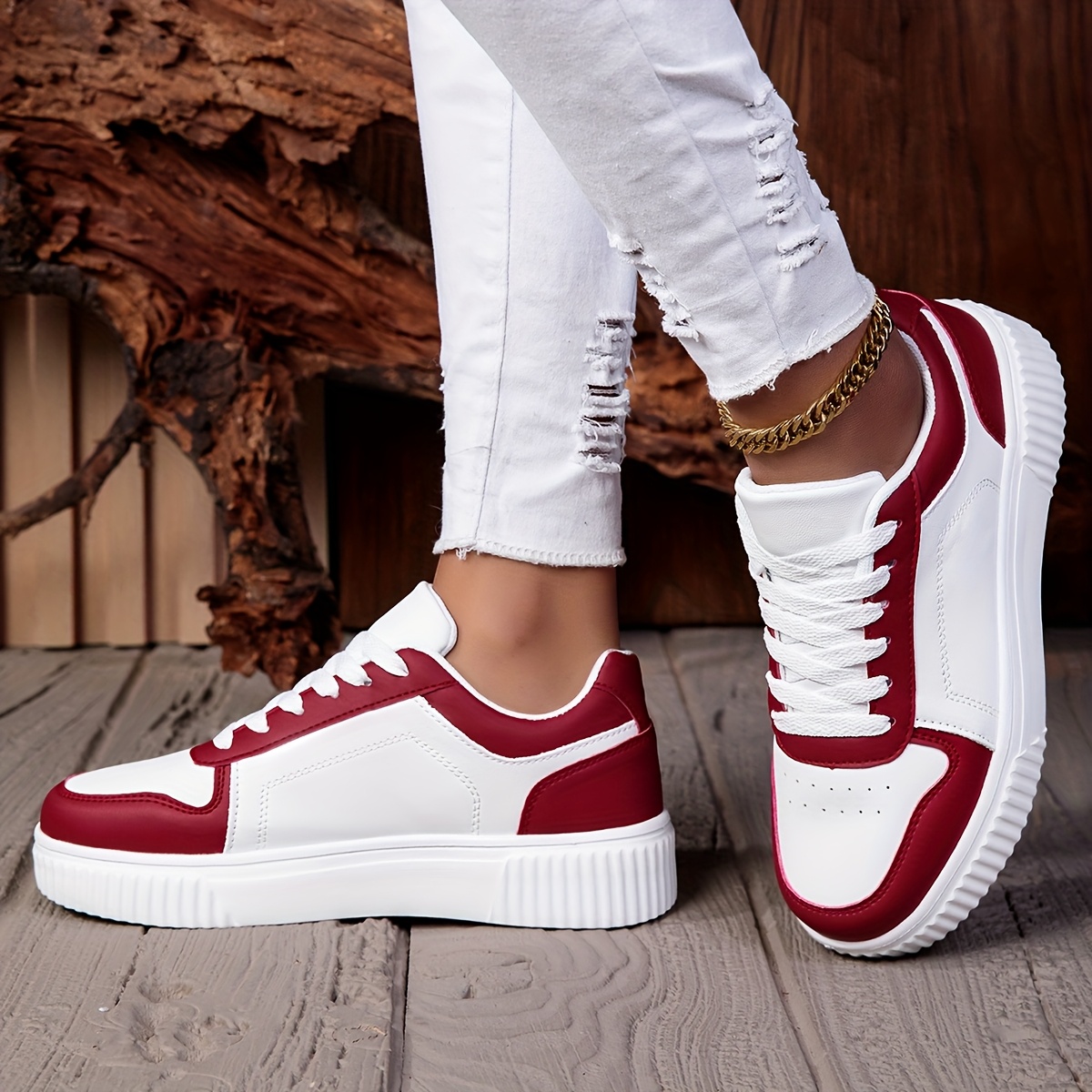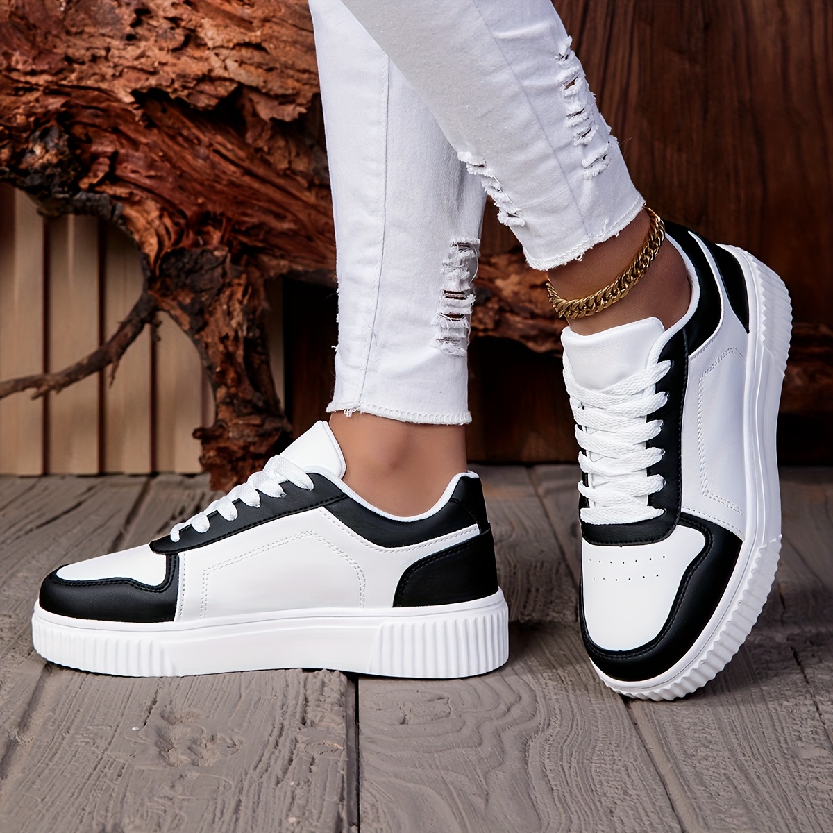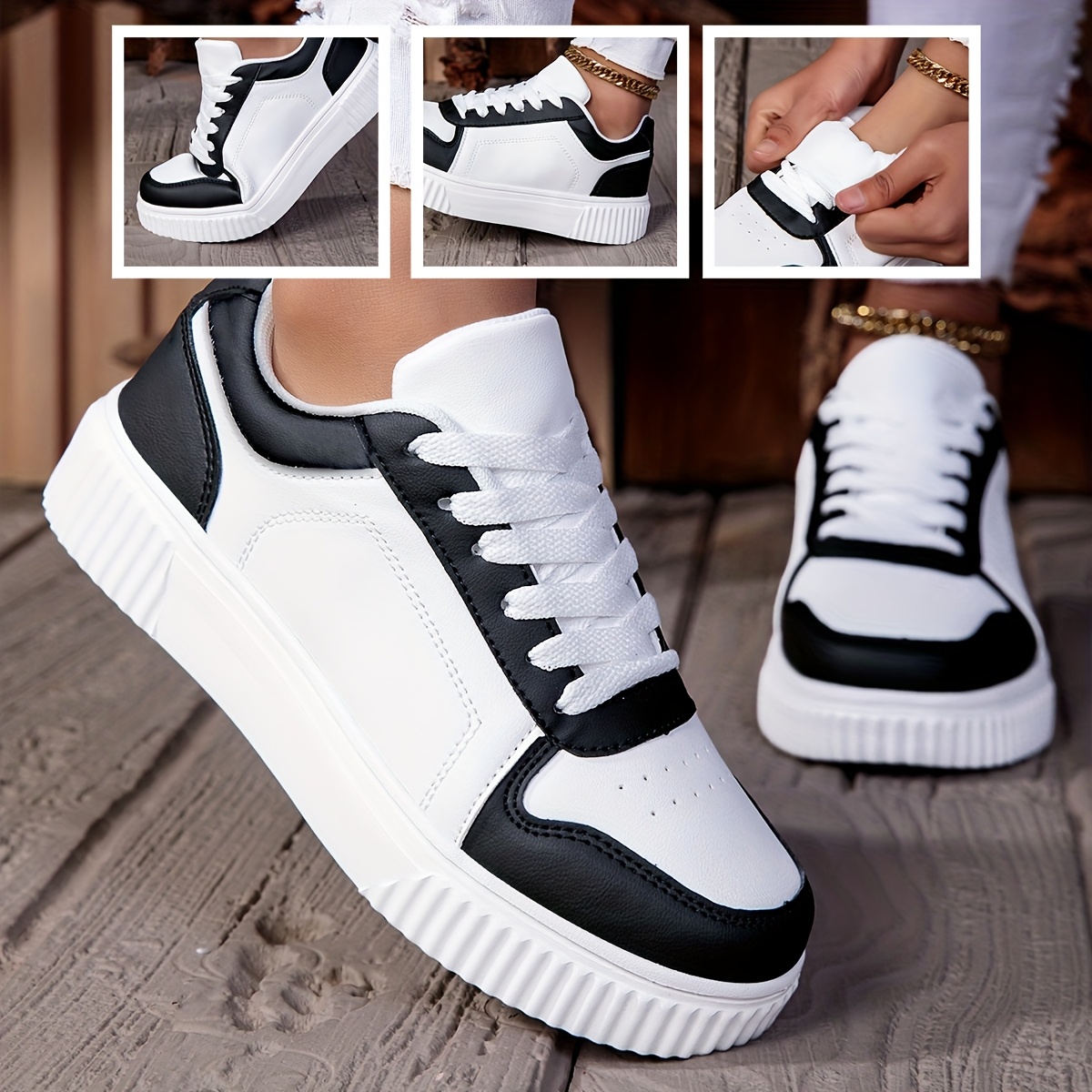 Women’S Casual Low-Top Lace-Up Sneakers – Breathable Lining, Lightweight PU & EVA Sole, White Geometric Design, All-Season Comfort for Outdoor Walking, Travel & Daily Wear, Durable & Stylish, Perfect for Live Streaming or Retail, Versatile Lifestyle Shoes | Minimalist Design | Comfortable Fit Shoes