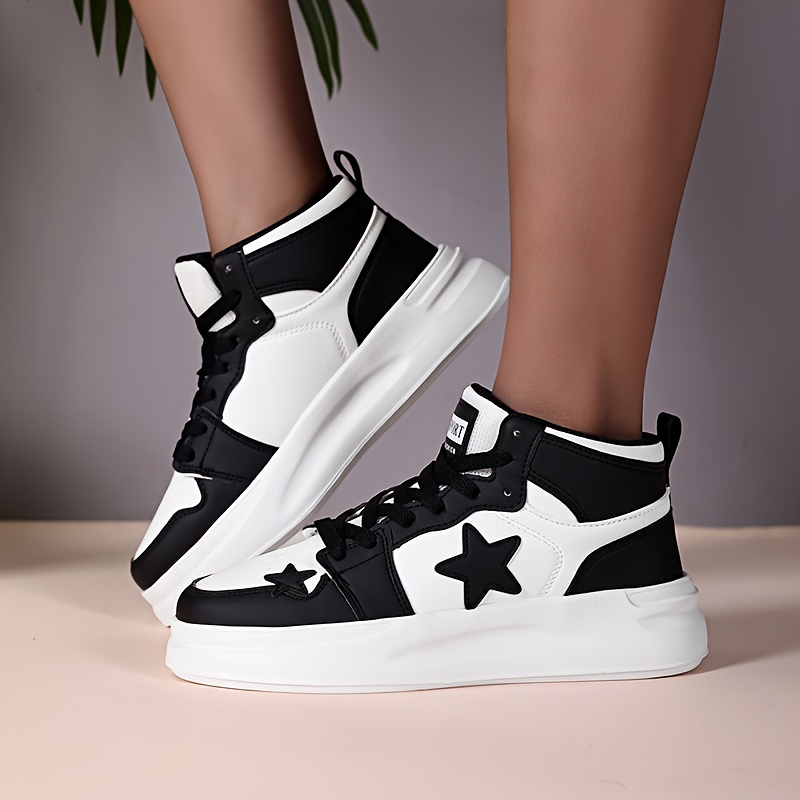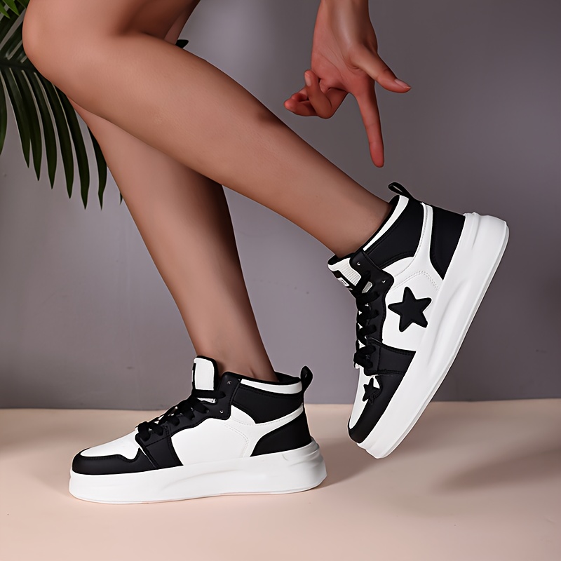 Women’S High-Top Sneakers – All-Season Lace-Up Shoes with Cushioned EVA Sole, Black & White colorway – Lightweight Sneakers for Gym, Running, Everyday – Synthetic Cover Upper & Breathable Fabric Lining – Non-Slip Streetwear Footwear, Gym Trainers, Sporty Design, Comfortable Fit, Women