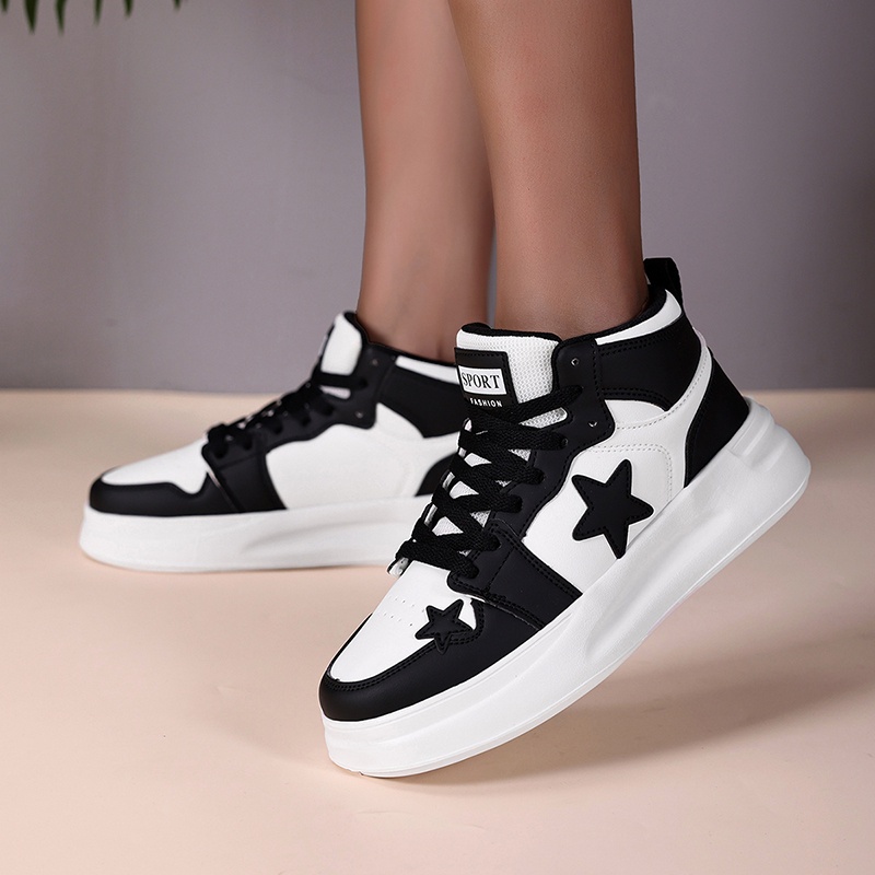 Closure: Lace up Toe Style: Plain toe Pattern: Stars Shoe height: High top All-season: All-season Style: Sports Upper Material: man made materials Inner Material: Fabric Insole Material: Fabric, EVA Sole Material: EVA Operation Instruction: Hand wash or professional dry clean Item ID: FU6085040 Origin: Fujian,China