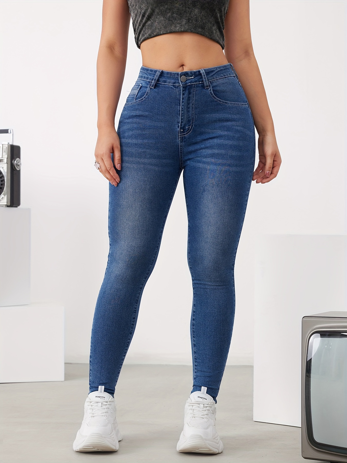 Women’s Skinny Jeans – Stretchy Non-See-Through Jeans with Button Closure, All-Season Skinny Fit Pants for Everyday & Formal Outfits – Hand Wash Only, Street Style, Stylish Stitching, Comfortable Material, Fitted Trousers, Urban Style