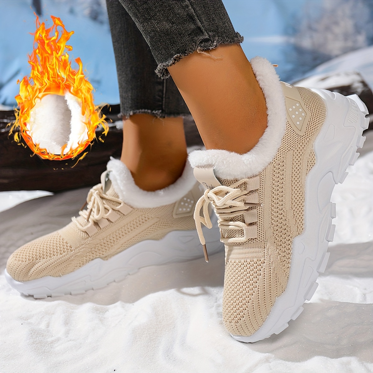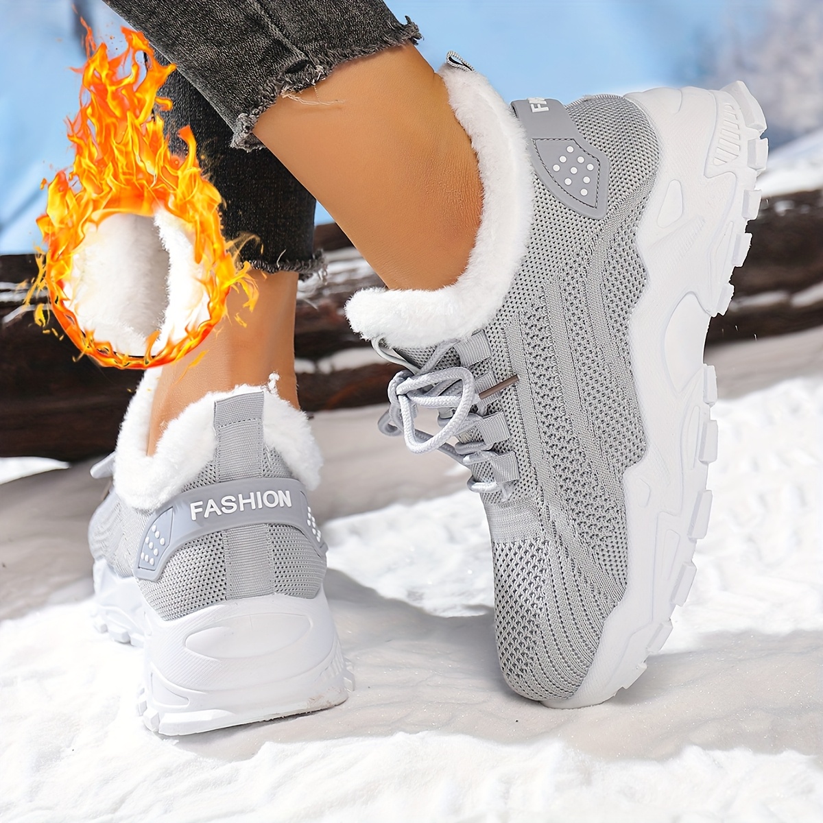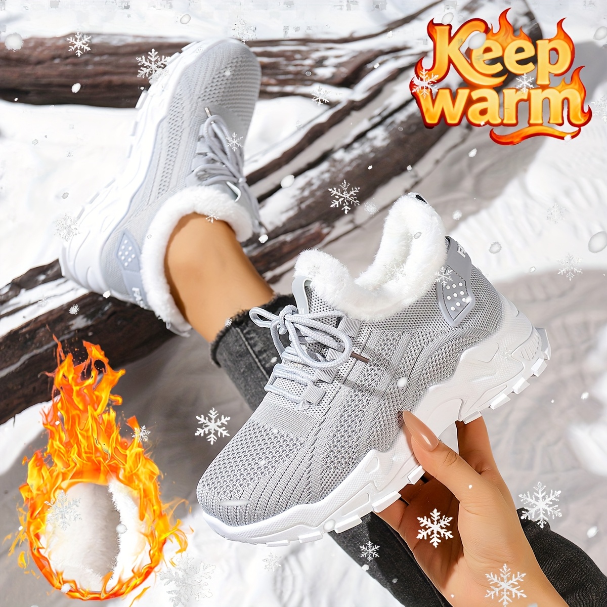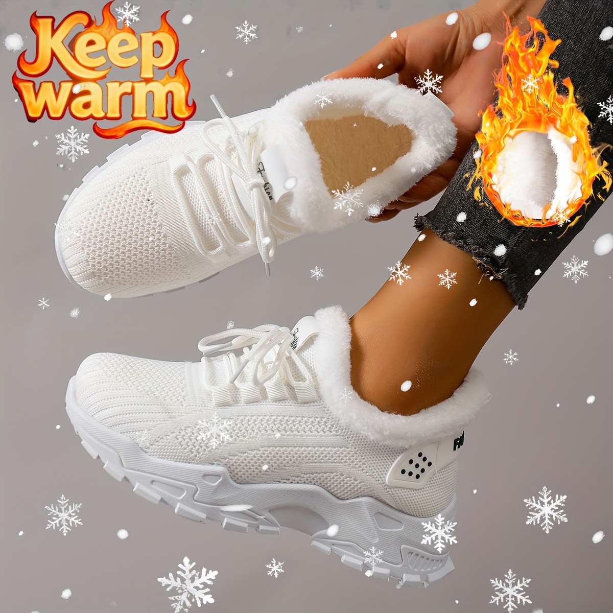 Women’s Winter Snow Boots with Plush Fleece – Warm White Lace-Up Short Boots, Non-Slip PVC Sole & Round Toe for Ice & Snow, Cozy Casual Outdoor for Skiing, Travel, Walking (Easy-Care Fabric Upper)