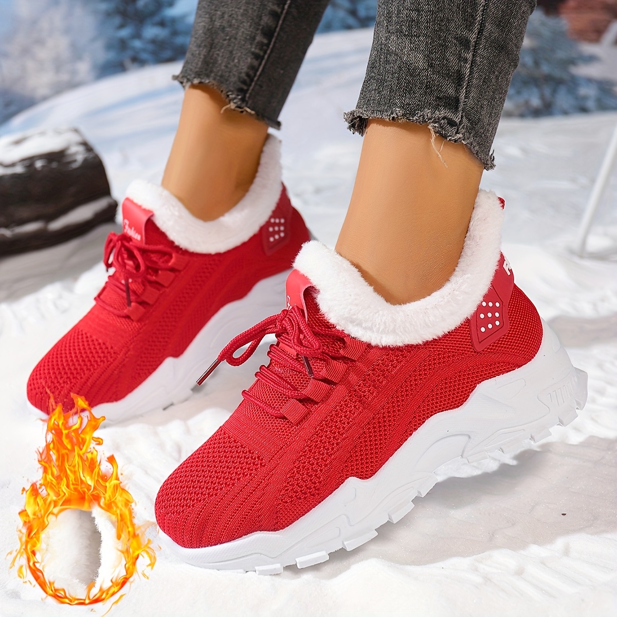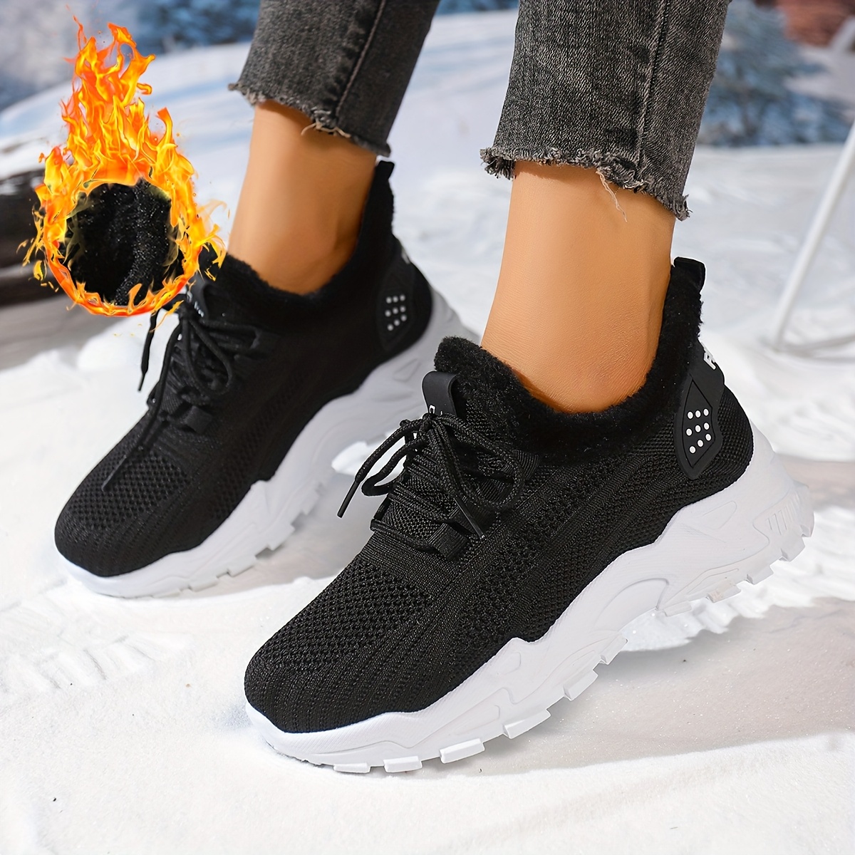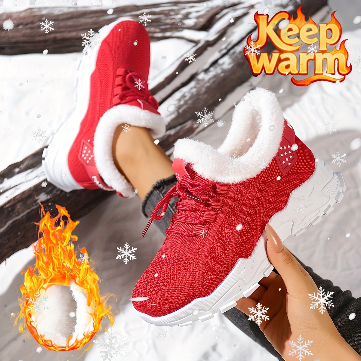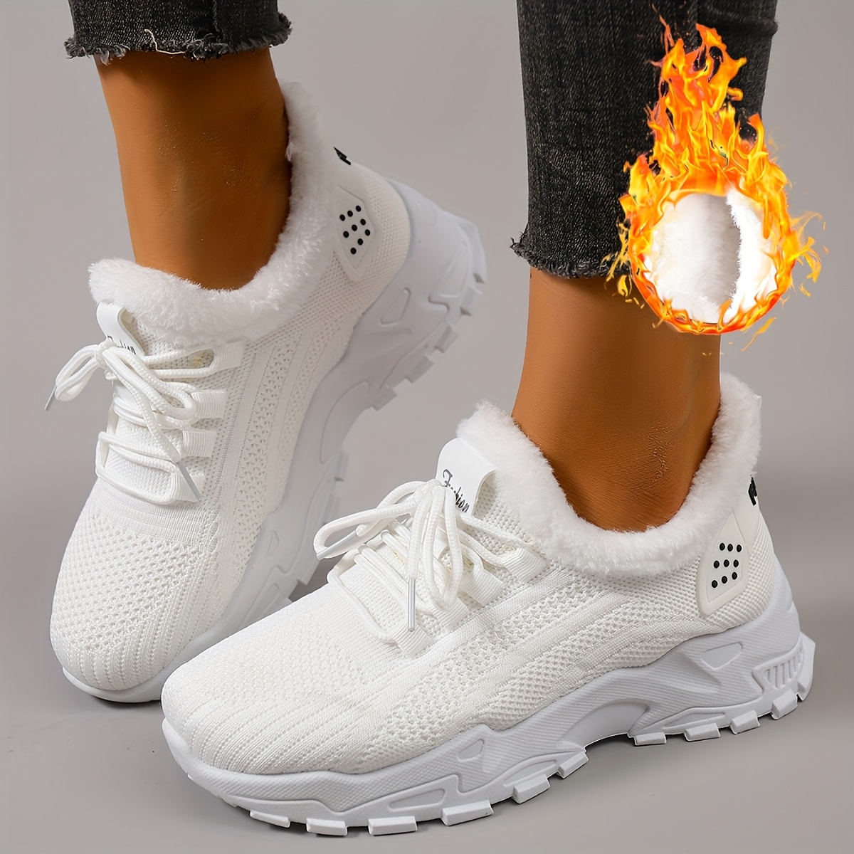 Women’s Winter Snow Boots with Plush Fleece – Warm White Lace-Up Short Boots, Non-Slip PVC Sole & Round Toe for Ice & Snow, Cozy Casual Outdoor for Skiing, Travel, Walking (Easy-Care Fabric Upper)